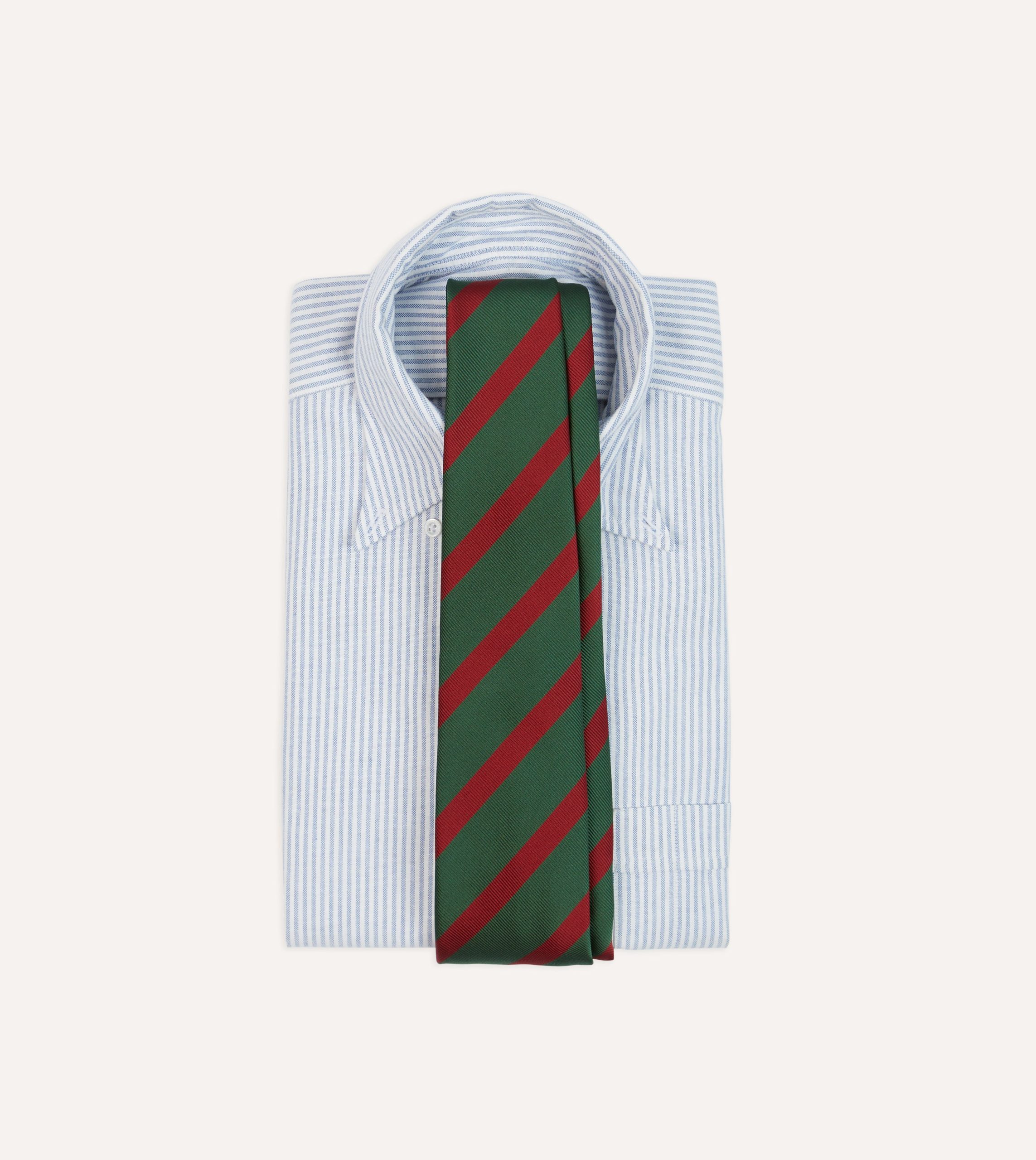Green and Red Dual Stripe Mogador Silk Tipped Tie