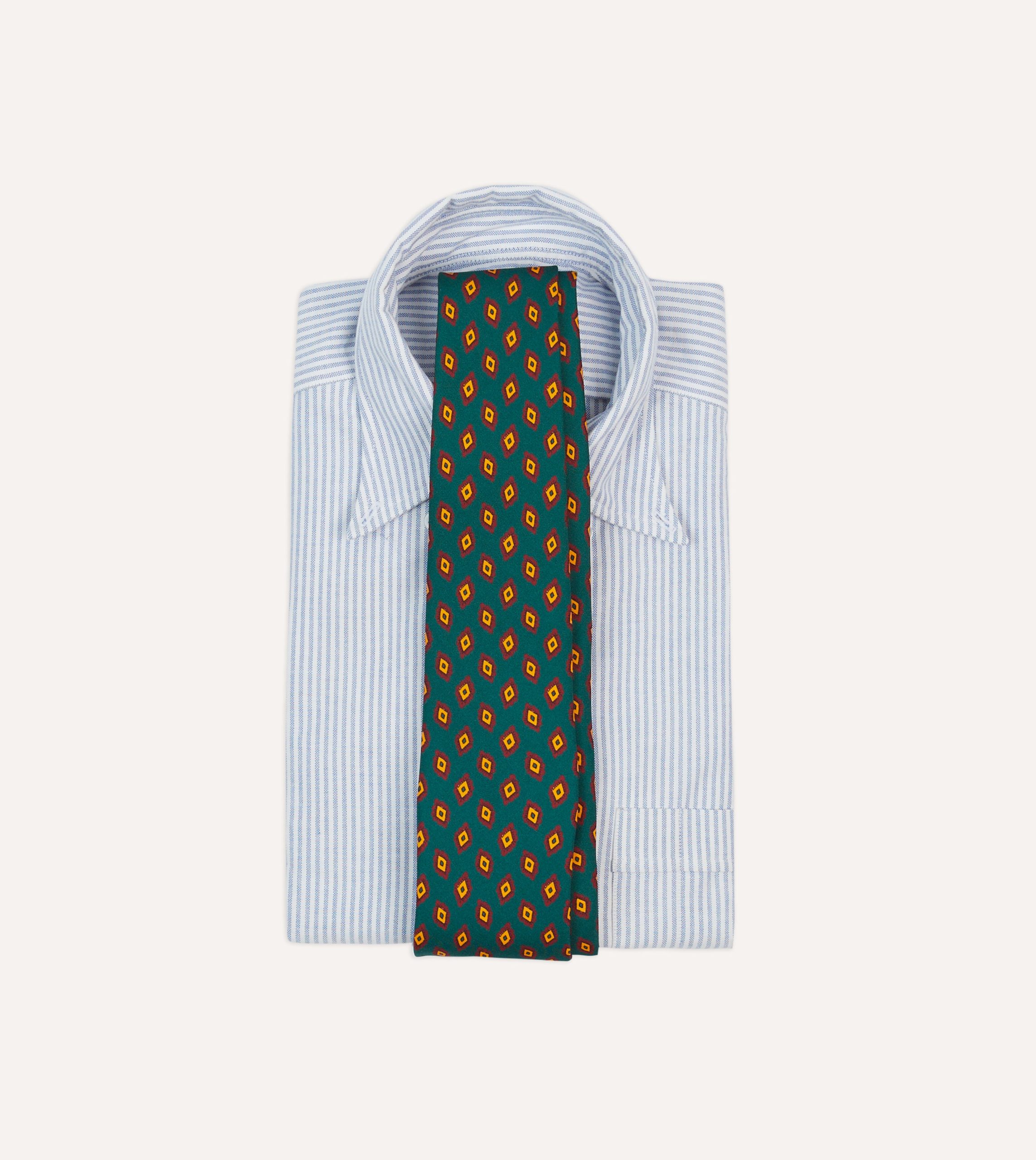 Green and Yellow Diamond Tile Print Silk Self-Tipped Tie