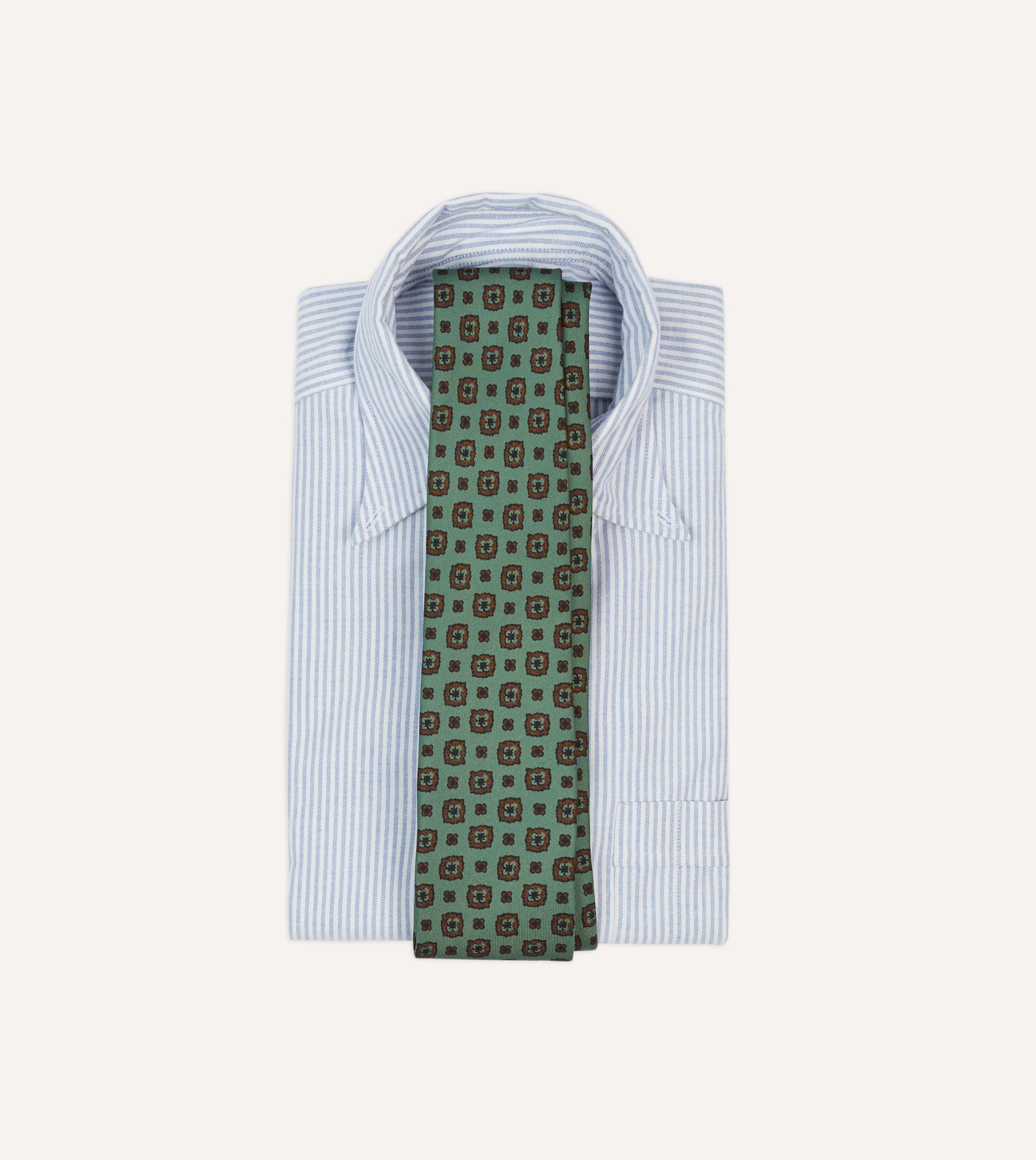 An ornate medallion design simply exudes elegance. particularly when printed on pure silk and hand rolled by our dedicated tiemakers in the heart of east London.