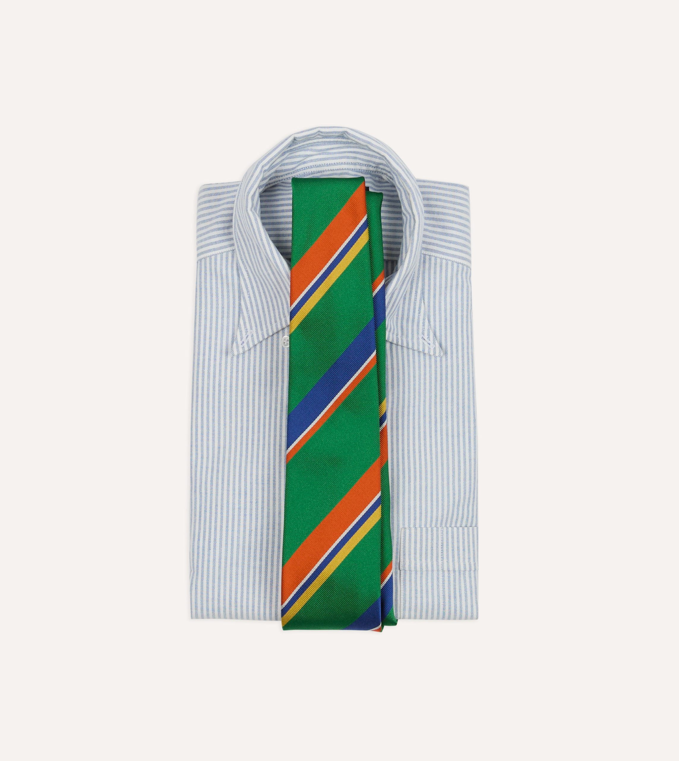 Green. Orange and Blue Multi Stripe Repp Silk Tipped Tie