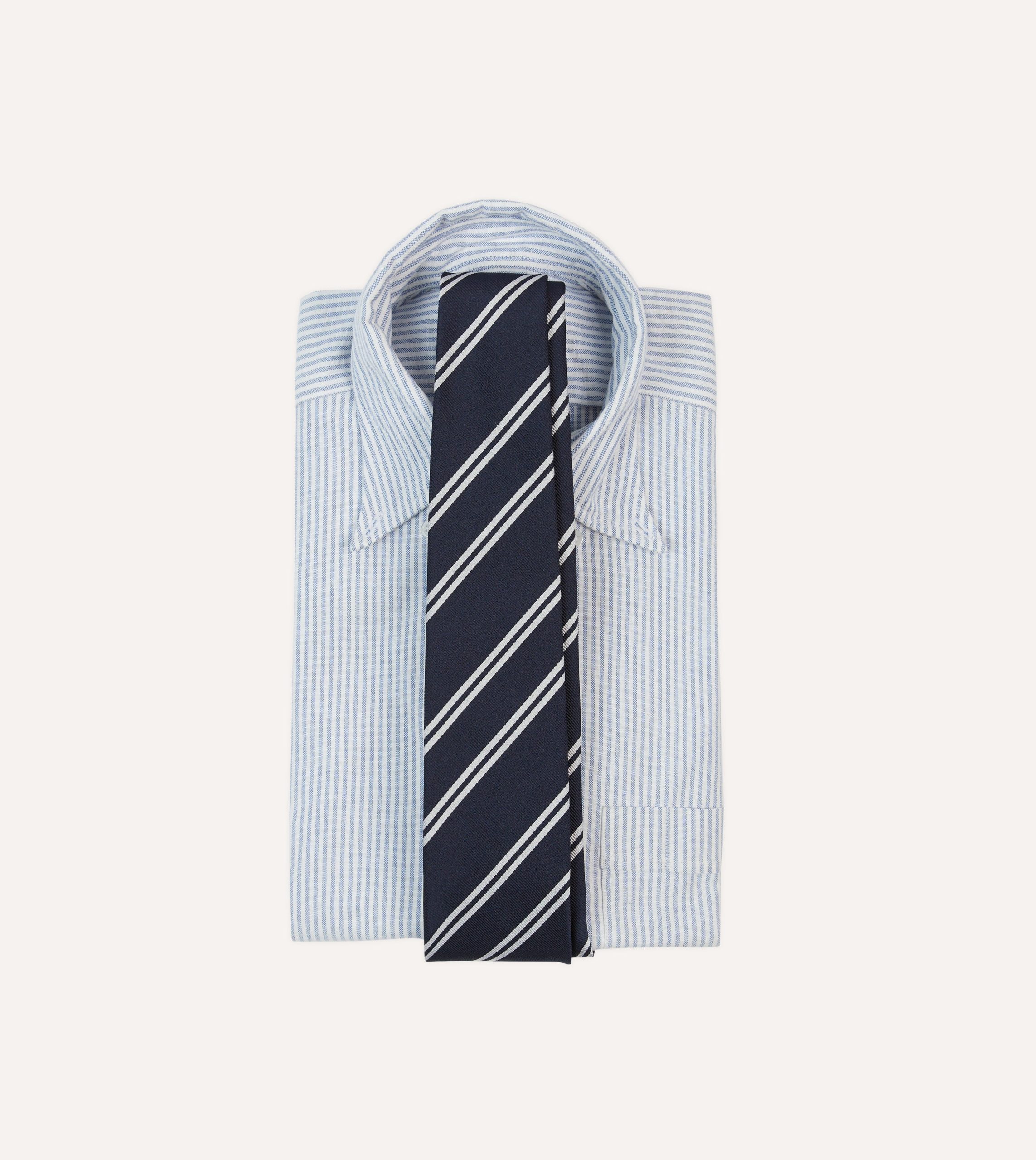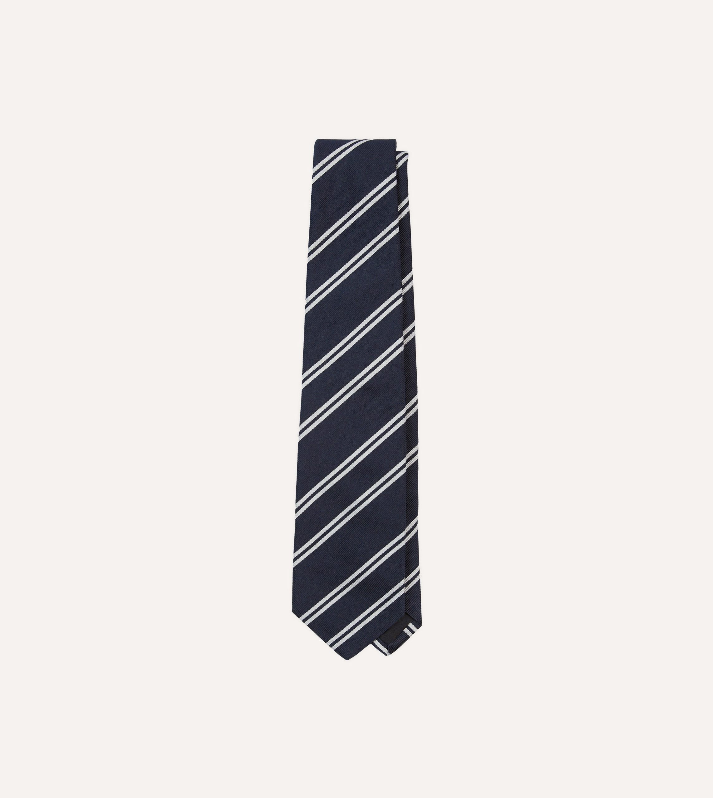 Be the first to review “Navy and Ecru Double Stripe Repp Silk Tipped Tie”