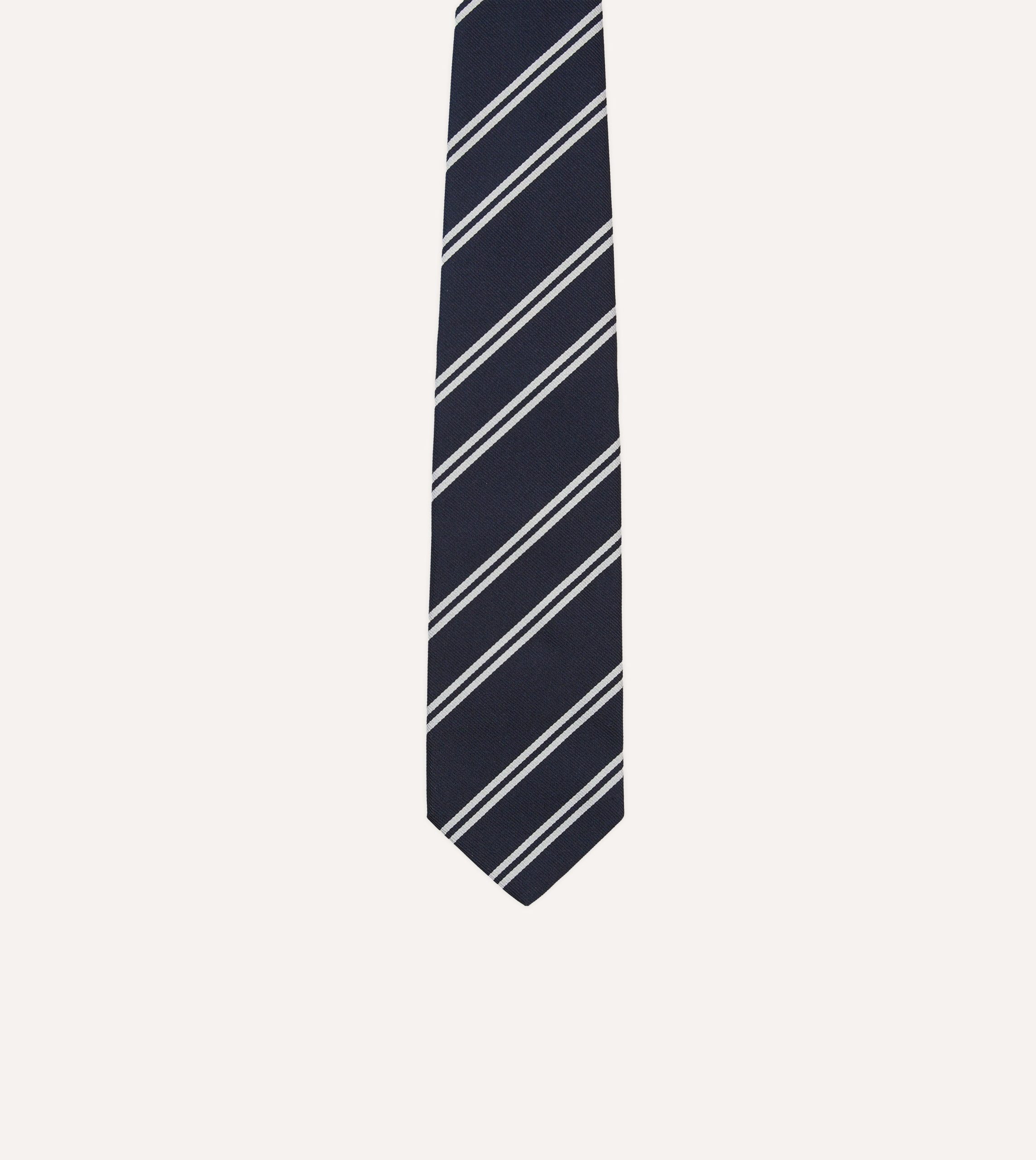 Navy and Ecru Double Stripe Repp Silk Tipped Tie