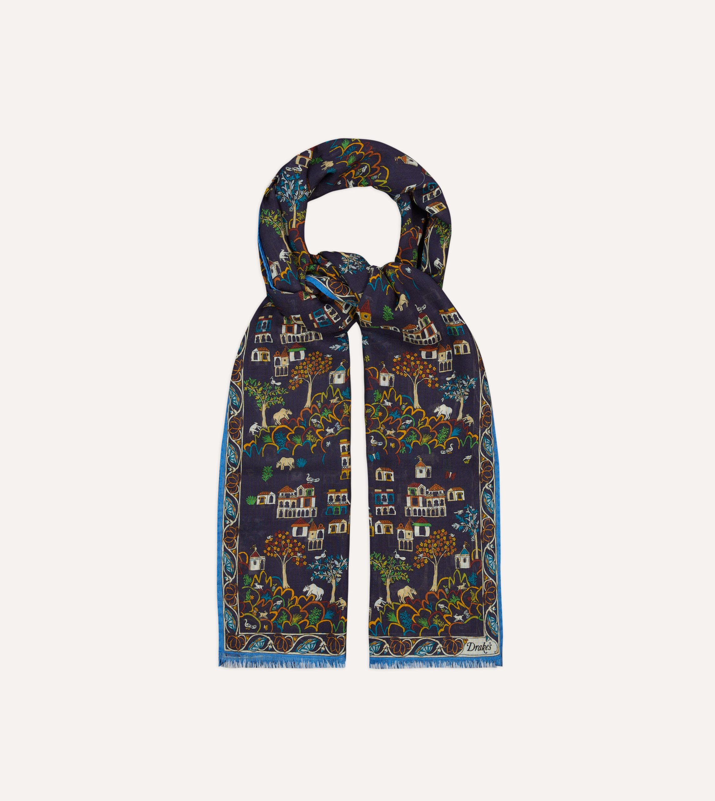 Taken from our extensive design archive. this antique village motif has been vividly applied to a blend of pure wool and silk for an elegant and airy addition to your arsenal.