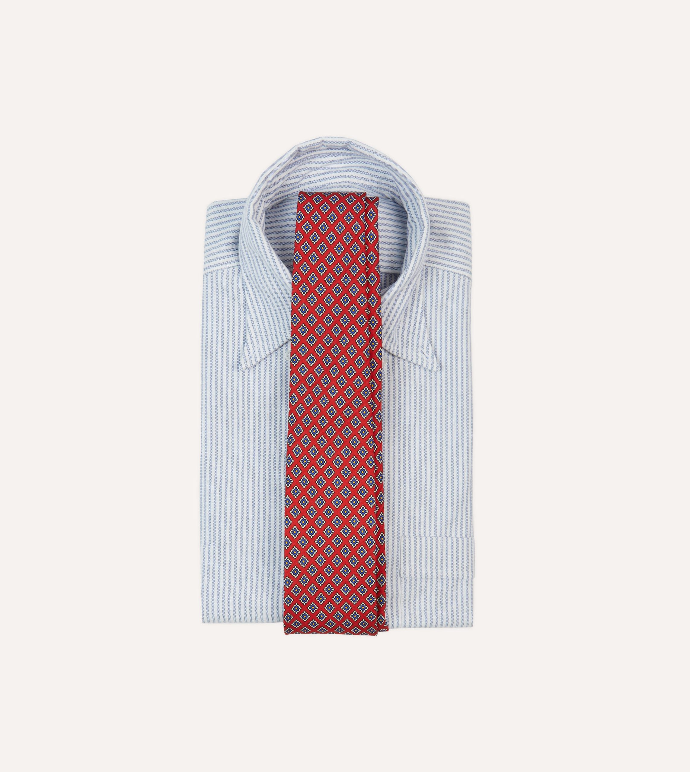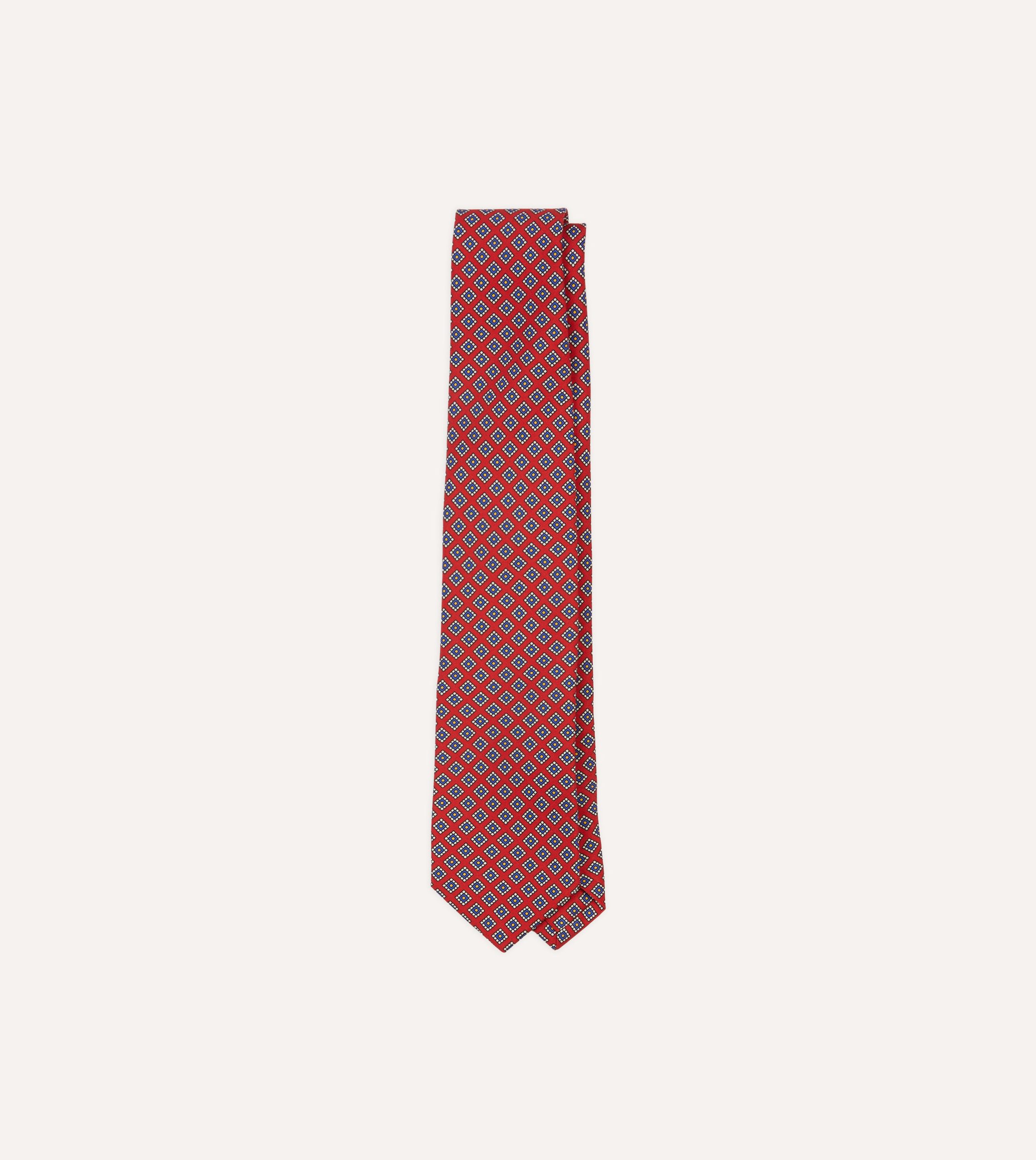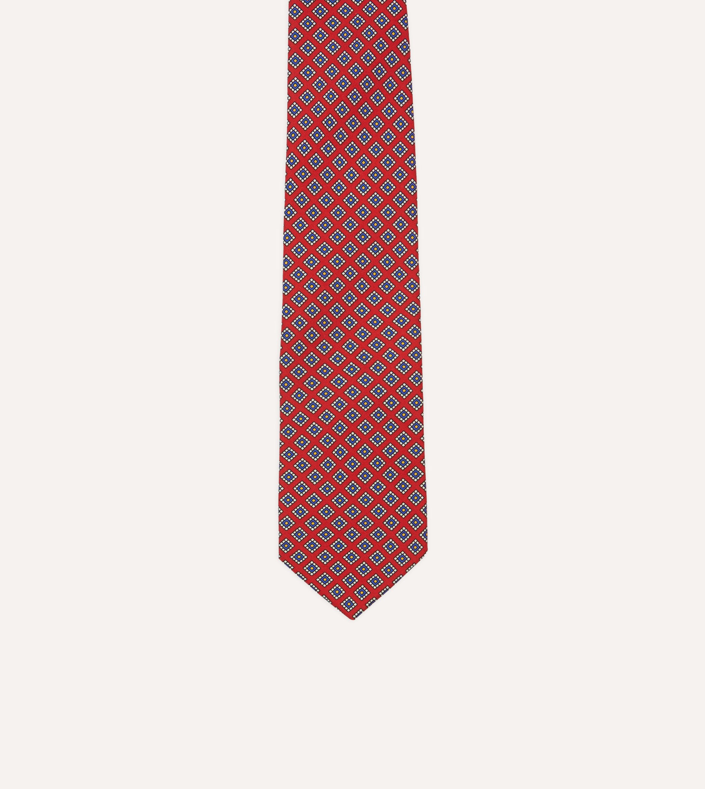 An ornate square motif simply exudes elegance. particularly when printed on pure silk and hand rolled by our dedicated tiemakers in the heart of east London.