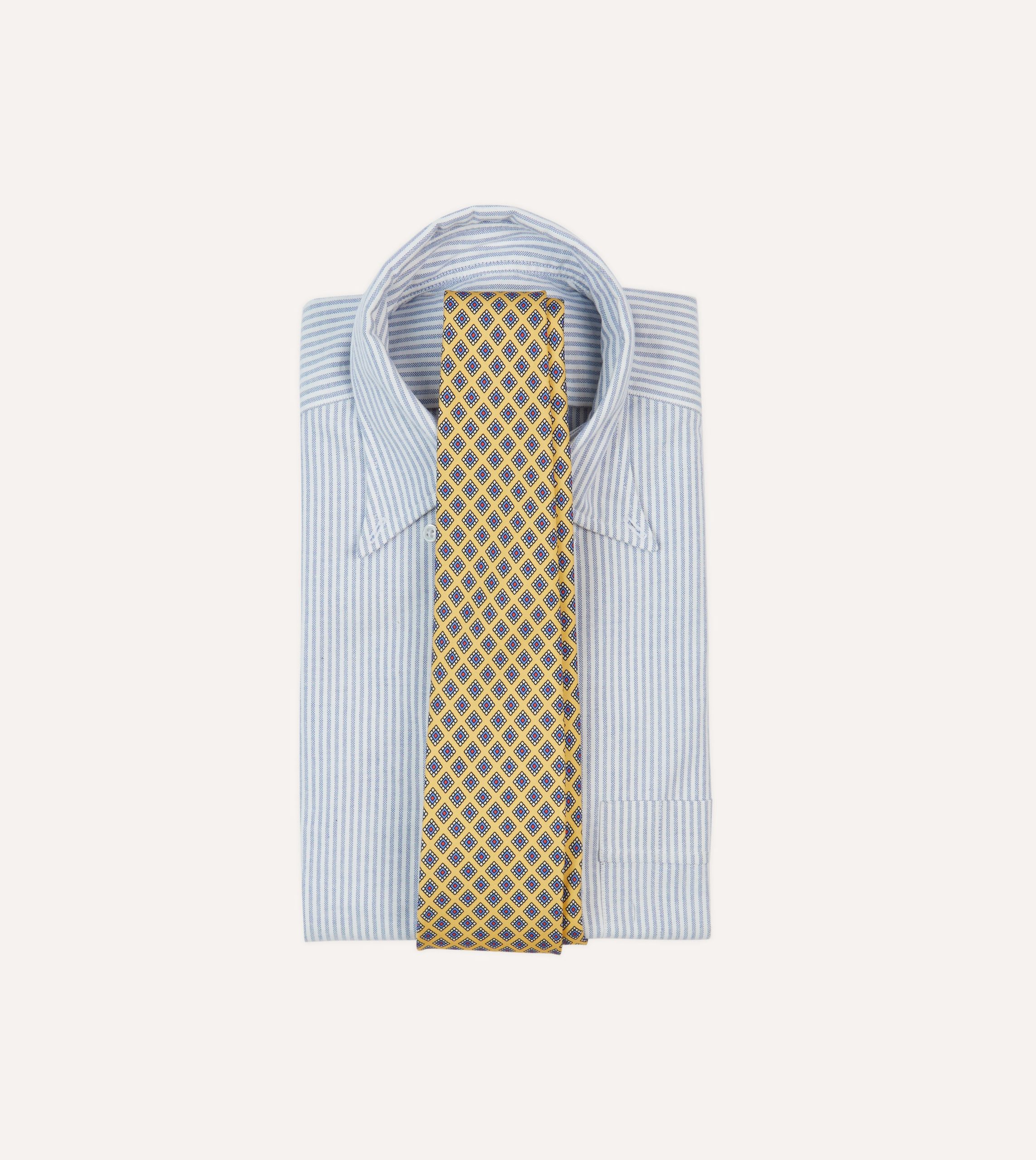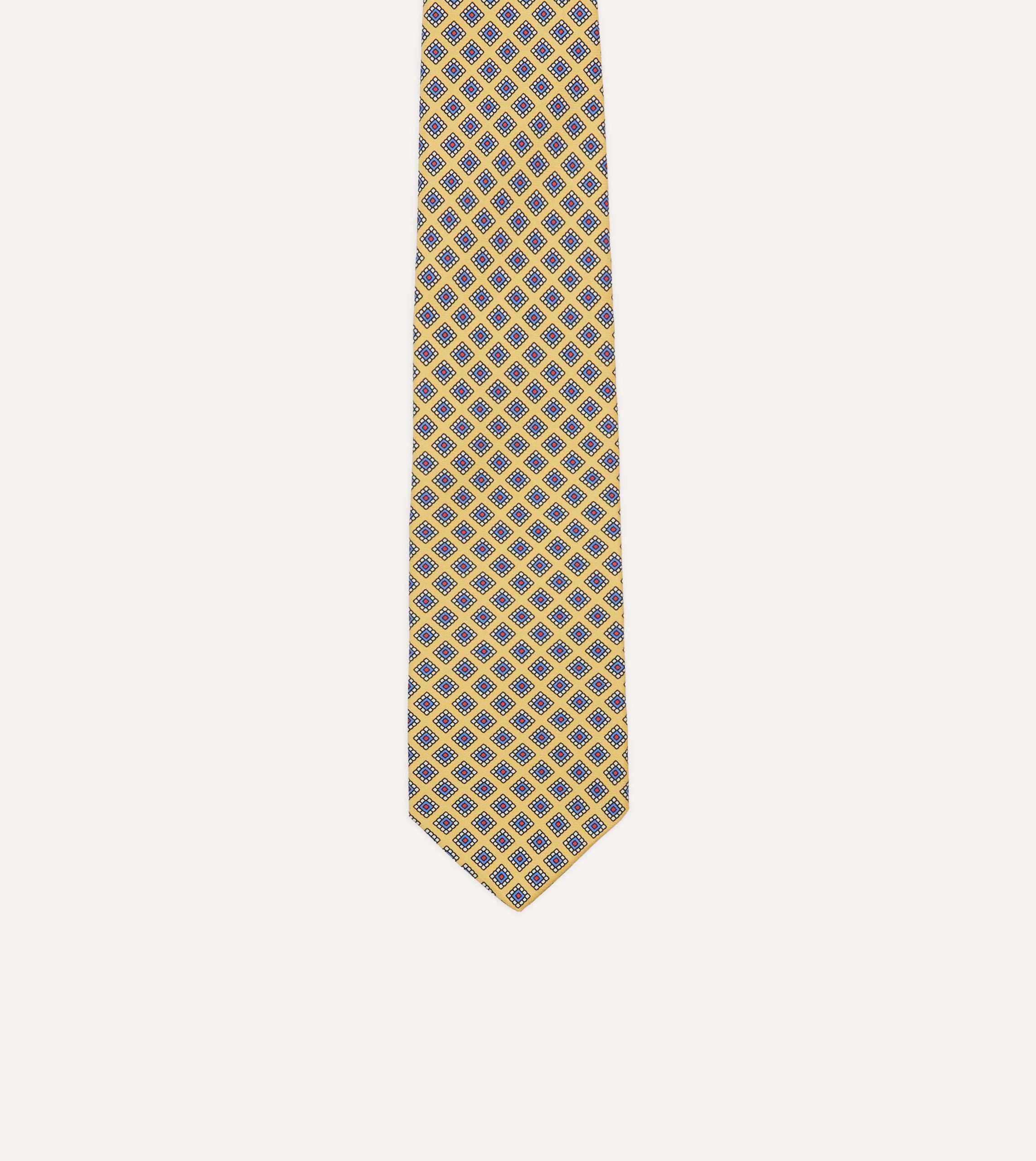 An ornate square motif simply exudes elegance. particularly when printed on pure silk and hand rolled by our dedicated tiemakers in the heart of east London.