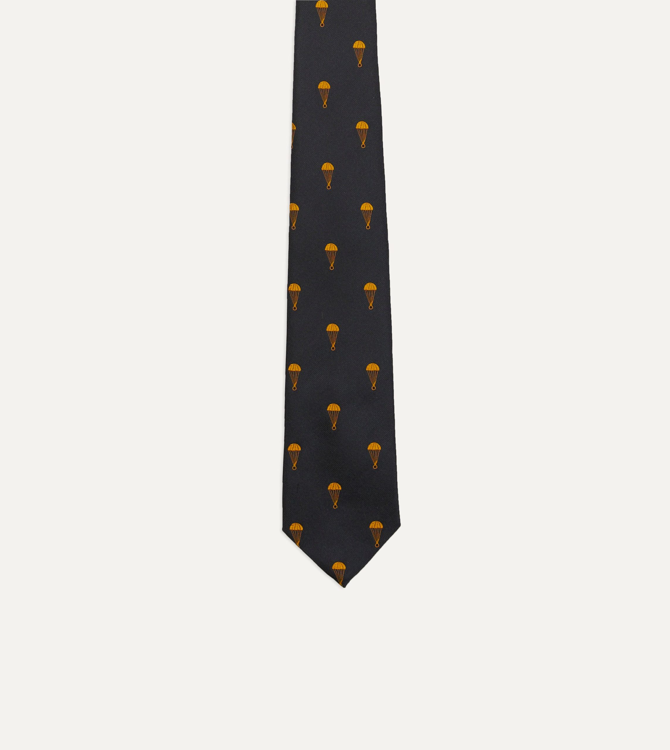 Be the first to review “Black and Gold Parachute Motif Silk Tipped Tie”