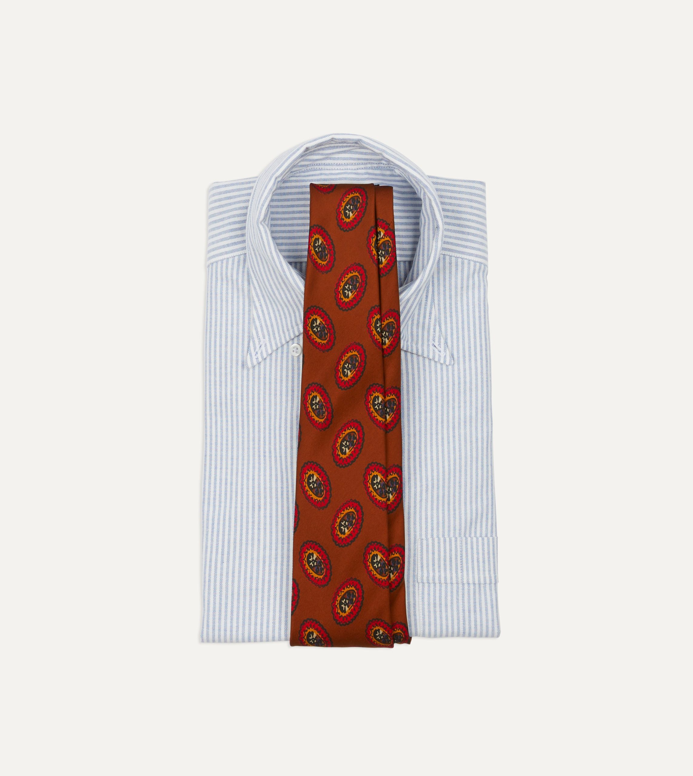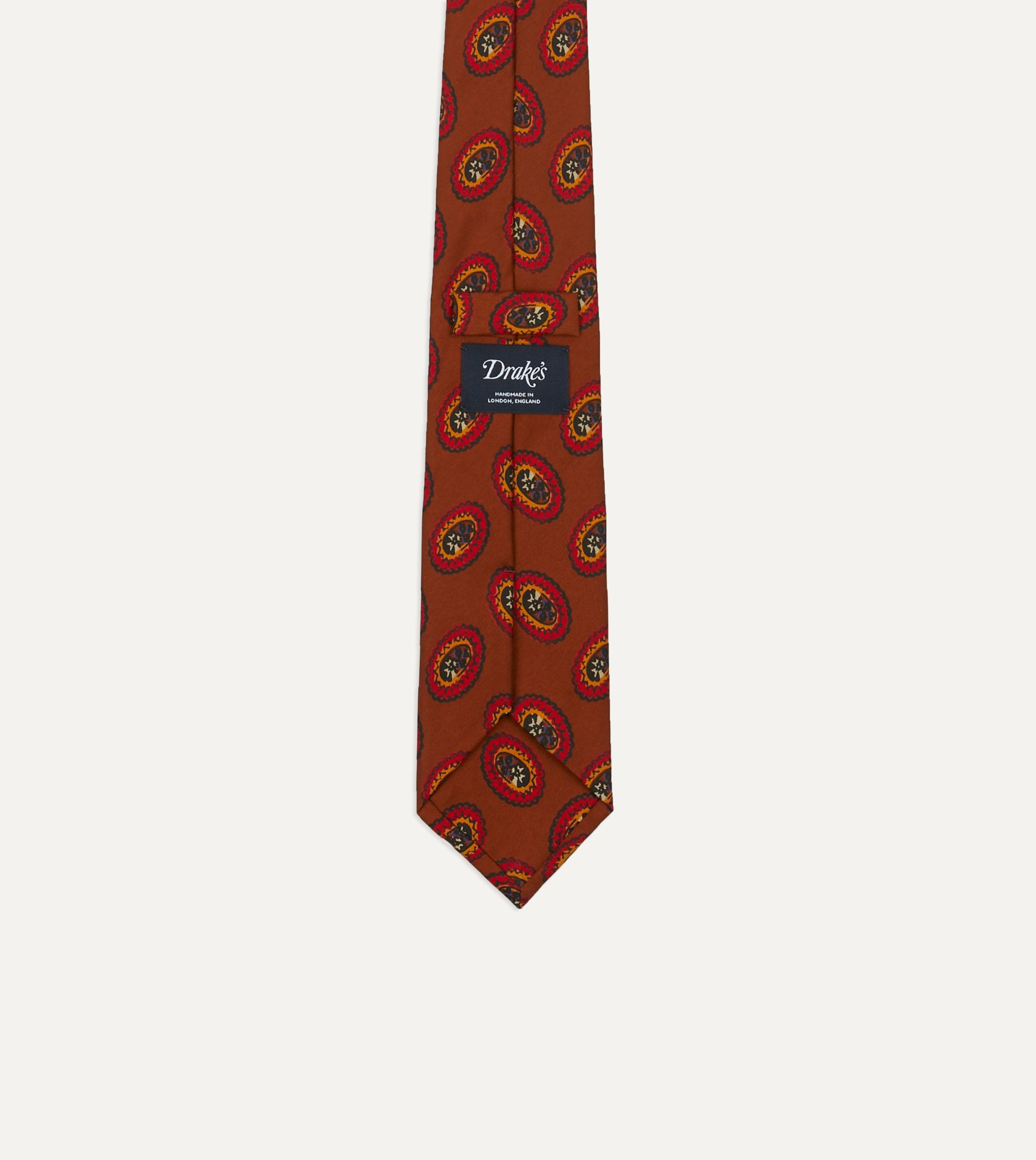 An ornate medallion design simply exudes elegance. particularly when printed on pure silk and hand rolled by our dedicated tiemakers in the heart of east London.