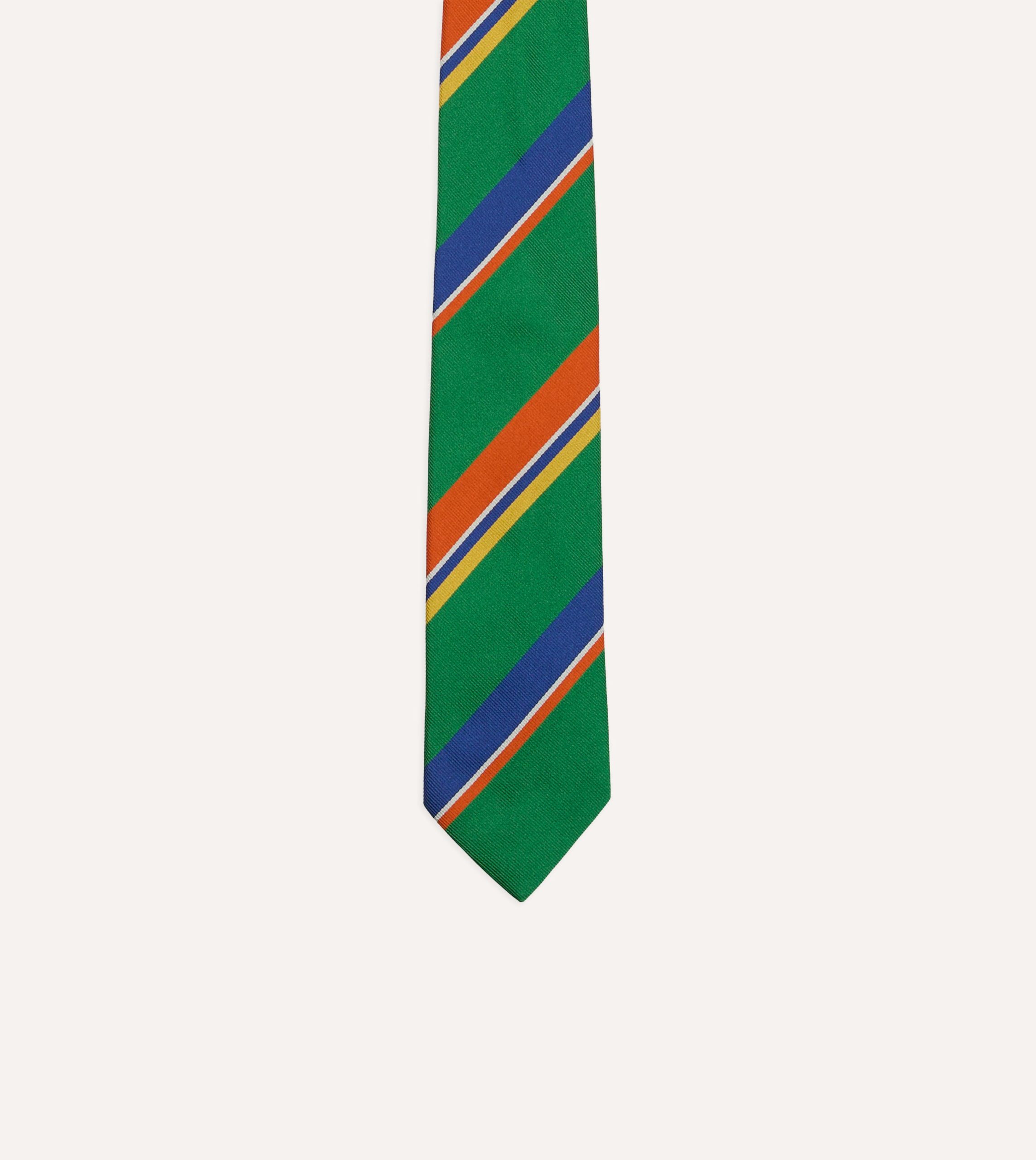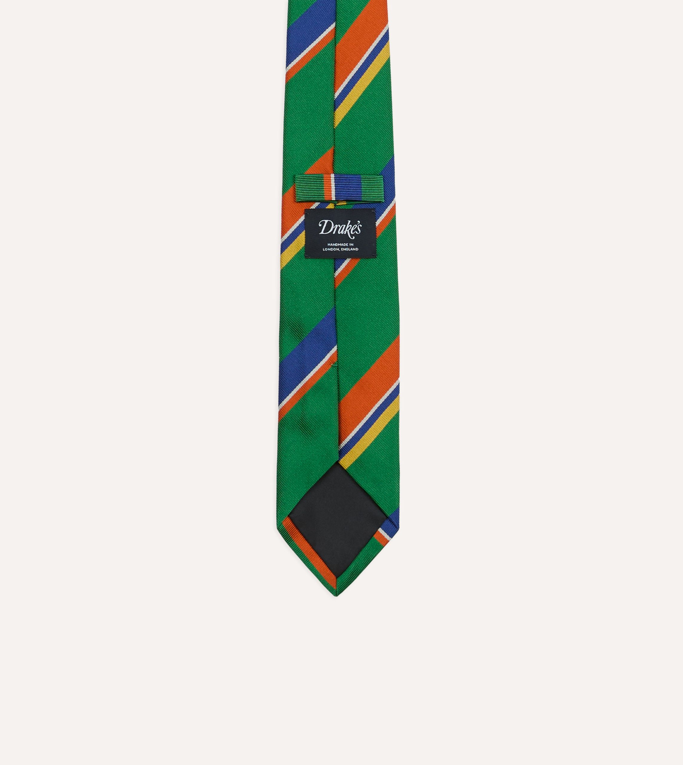 Green. Orange and Blue Multi Stripe Repp Silk Tipped Tie