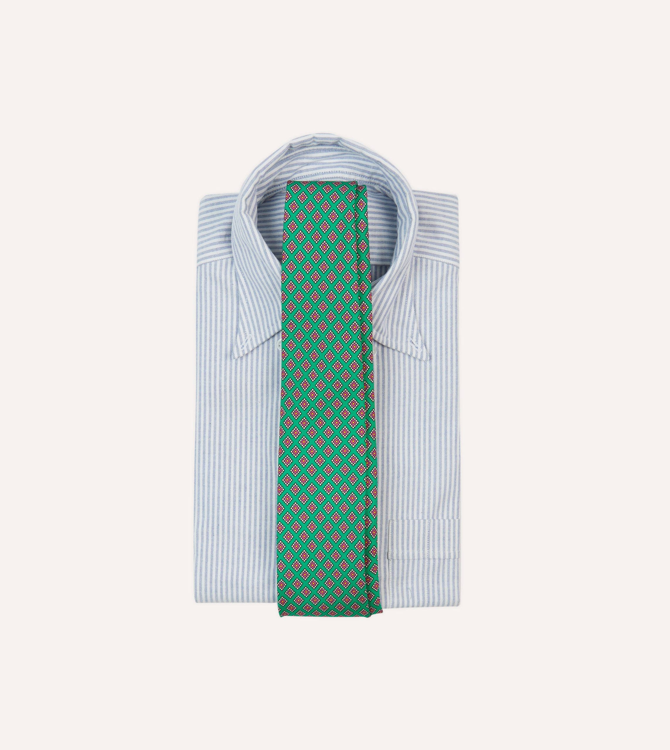 An ornate square motif simply exudes elegance. particularly when printed on pure silk and hand rolled by our dedicated tiemakers in the heart of east London.
