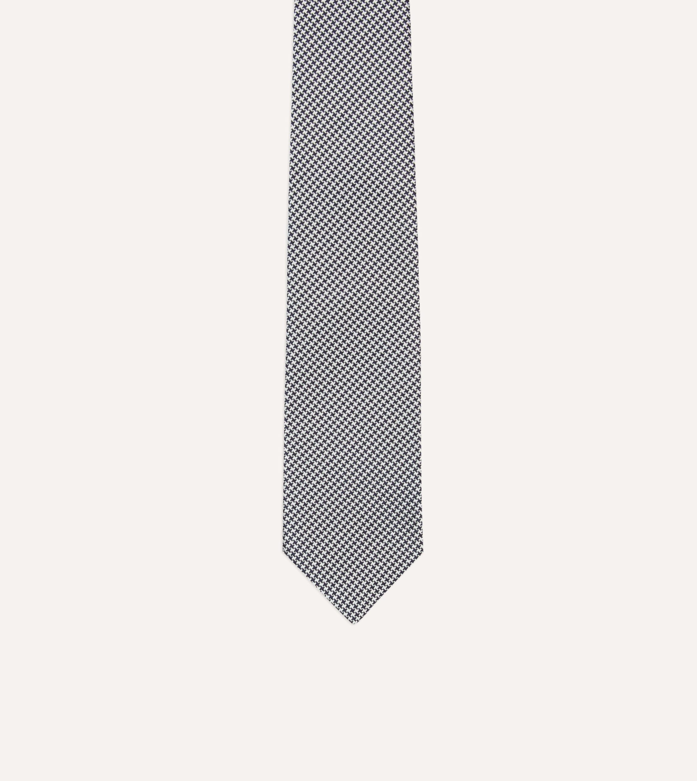 Navy Houndstooth Mogador Silk Tipped Tie