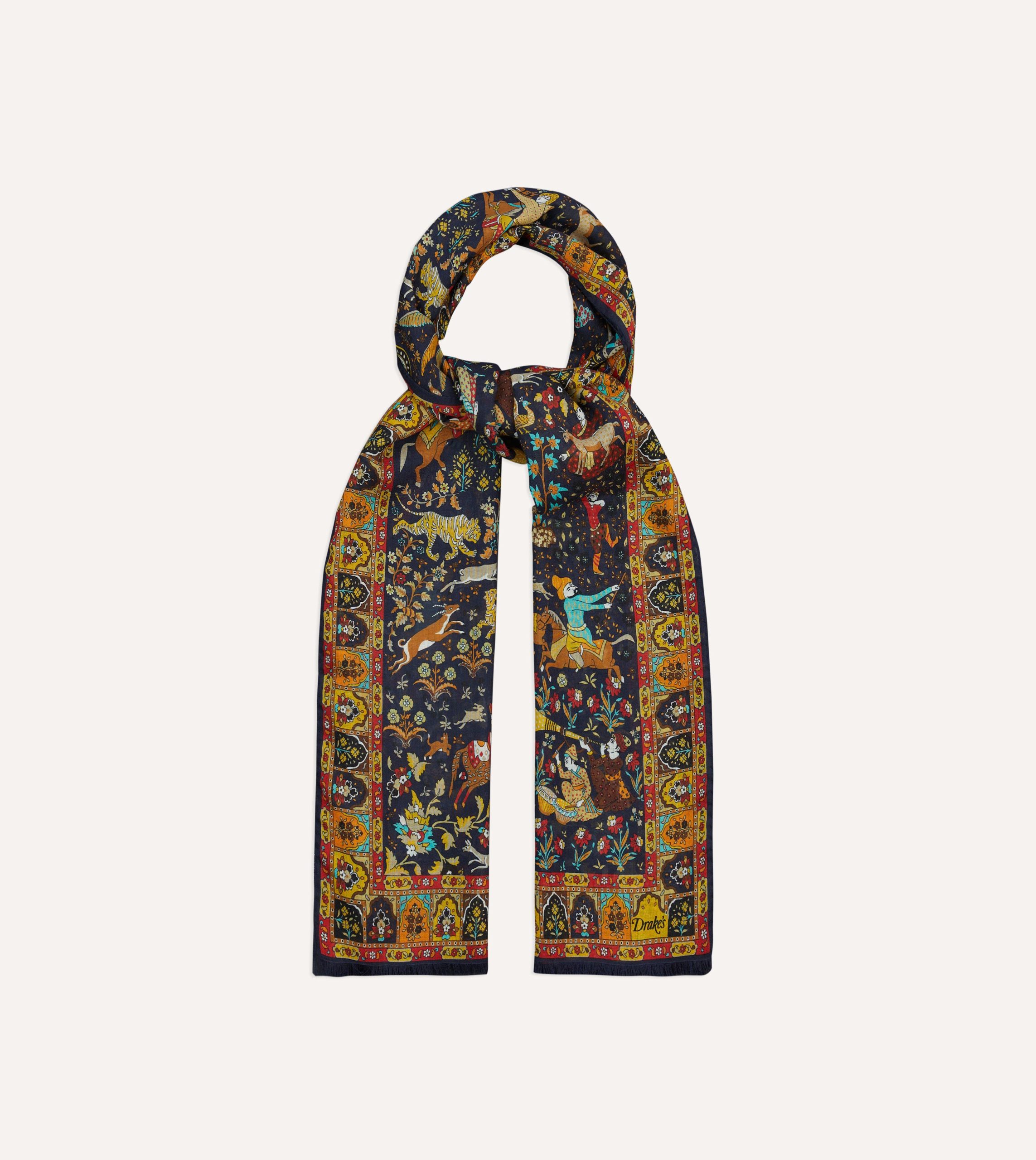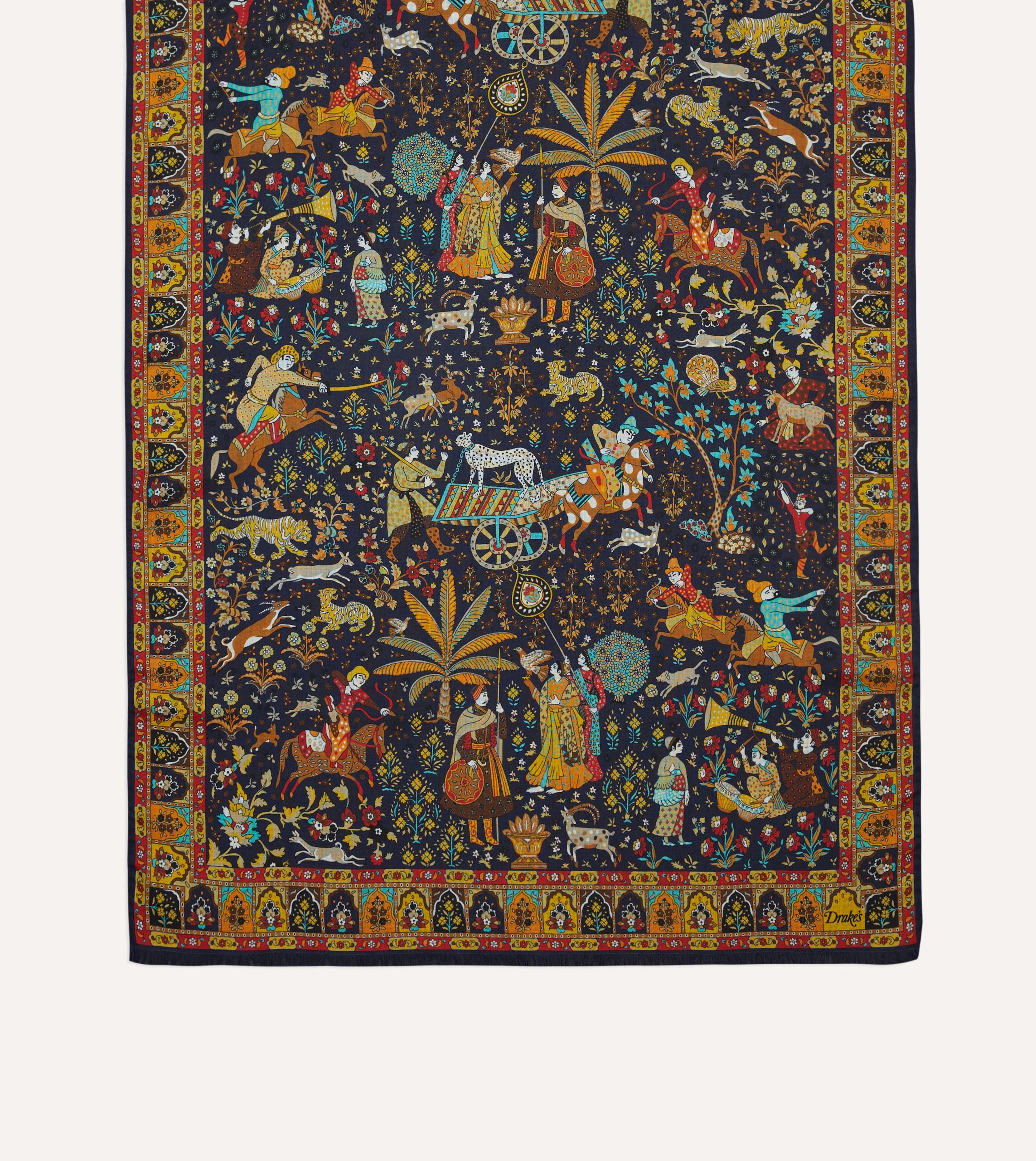 Be the first to review “Navy Mughal Garden Print Wool Silk Scarf”