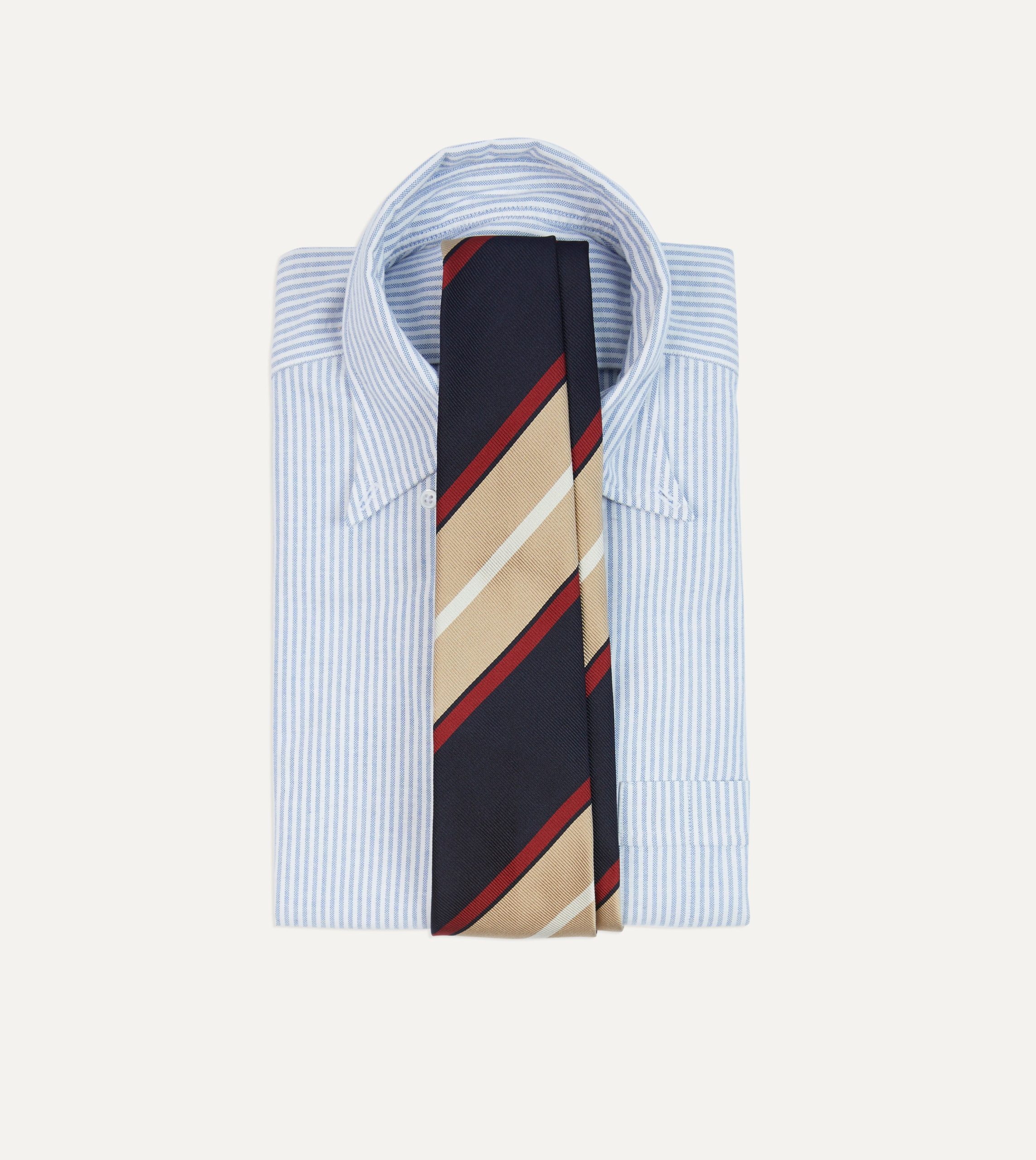 Navy. Red and Gold Multi Stripe Mogador Silk Tipped Tie
