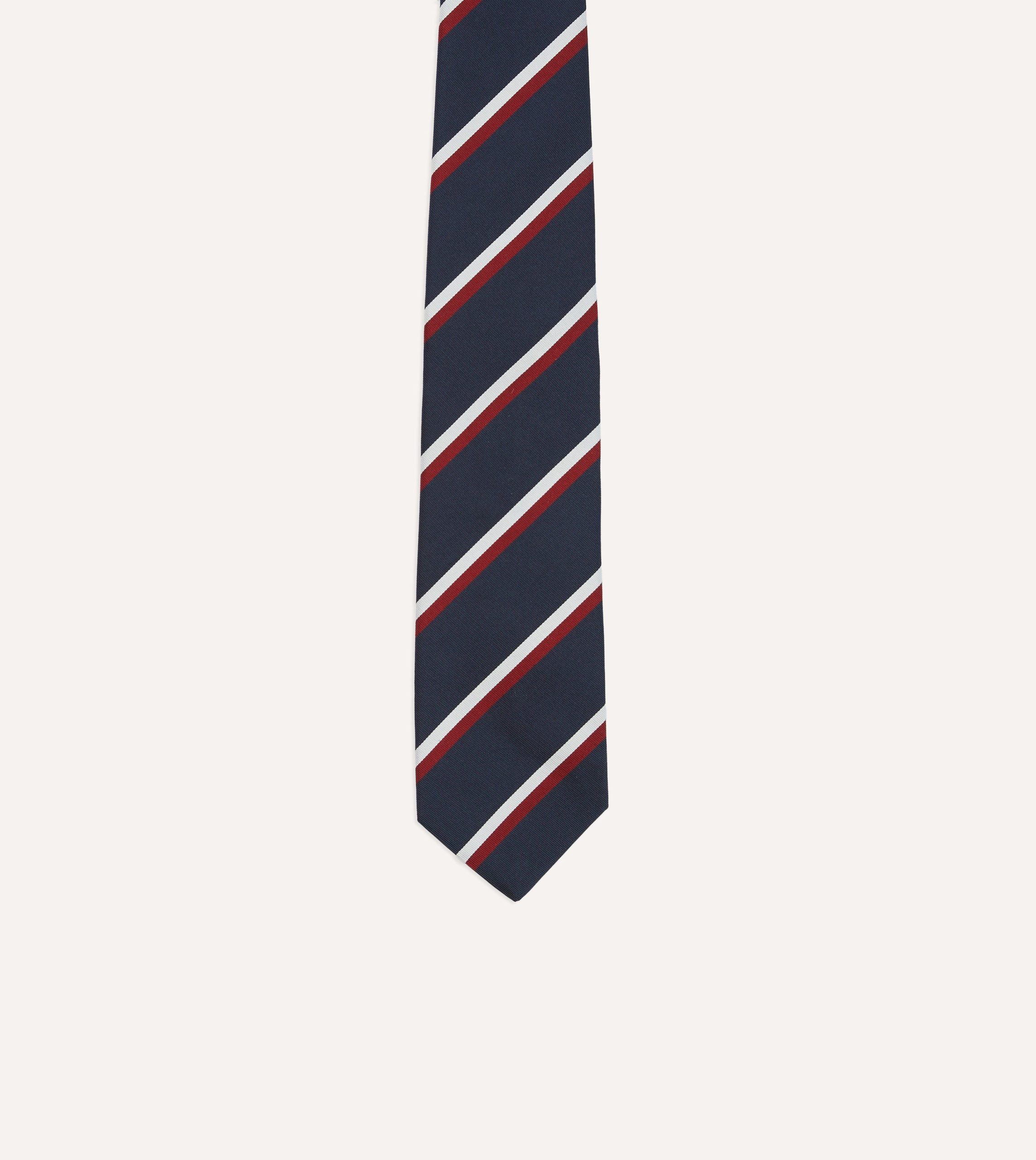 Navy. Red and White Double Stripe Mogador Silk Tipped Tie