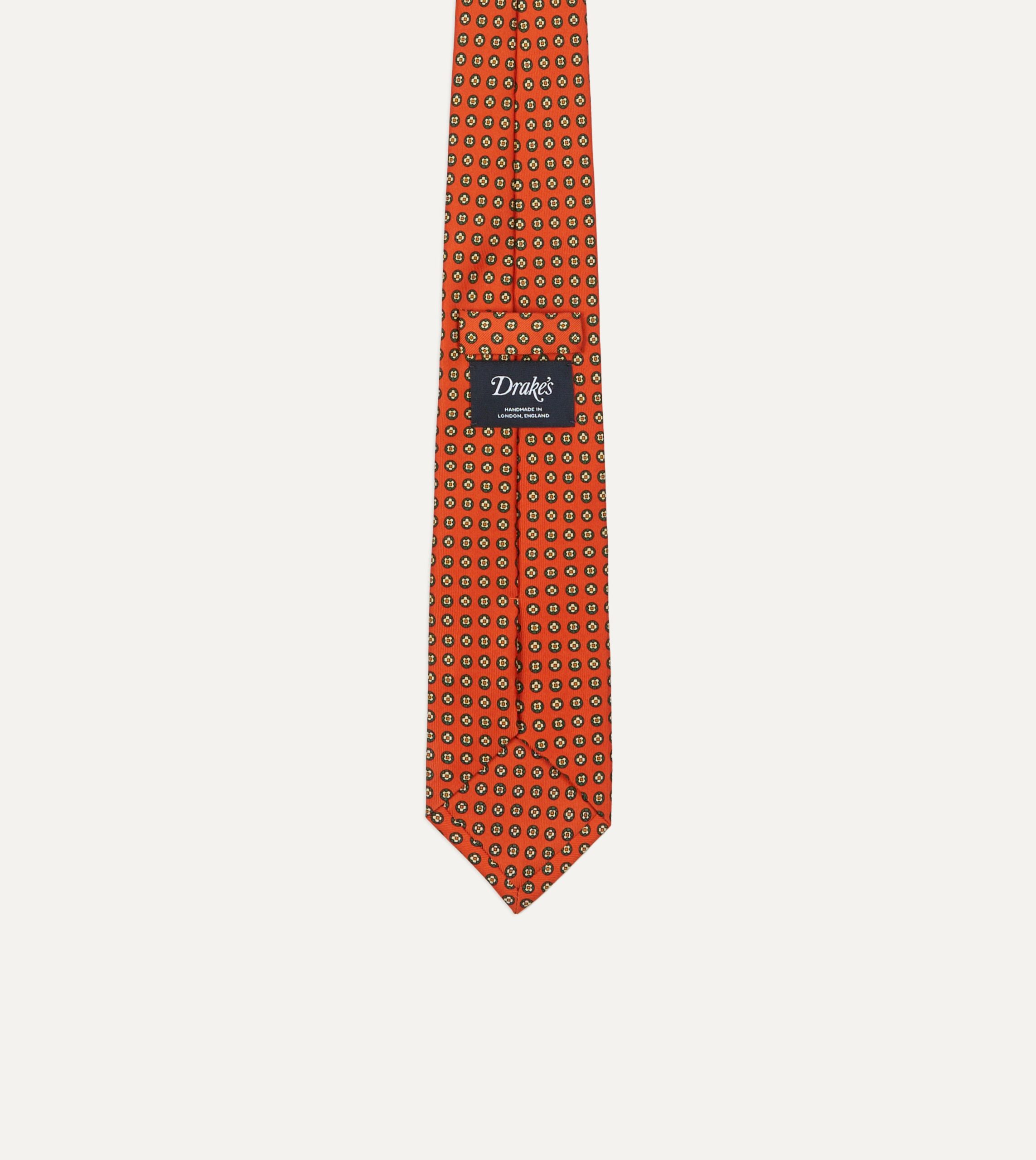 Orange Micro Geometric Print Silk Self Tipped Tie
